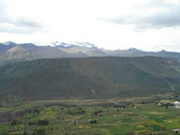 Comecamos o passeio pelo vale do Colca. O vale e todo cultivado, nao ha mecanizacao. A divisao da agua e feita de maneira amigavel entre todos. O governo quis intervir, os nativos fizeram greve, e continuar compartilhar agua no sistema milenar. A cultura e feita em terracos pois o declive em alguns lugares e muito acentuado e a irrigacao e por gravidade.